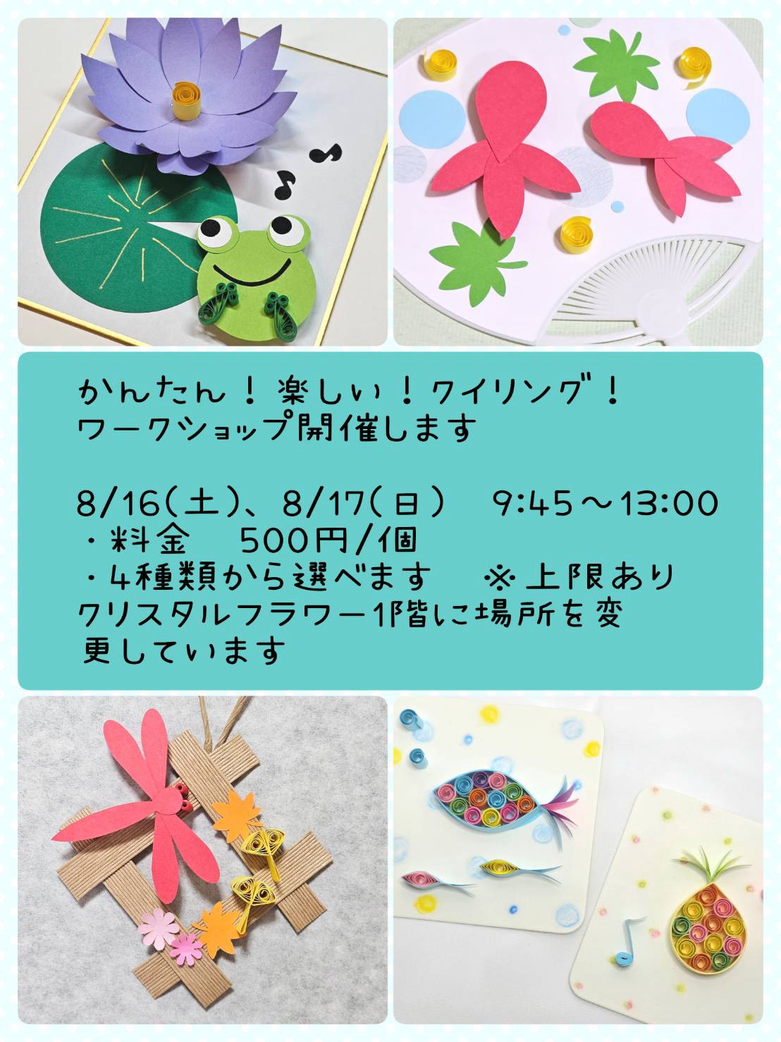 「かんたん!楽しい!クイリング!」をテーマに、お子さまから大人まで楽しめるワークショップが登場!